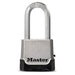 The Master Lock Magnum® No. M176XDLH Solid Body Padlock features a 2in (51mm) wide zinc die-cast body for strength and reliability. The 3/8in (10mm) diameter octagonal shackle is 2in (51mm) long and made of Tough-Cut™ boron-carbide, 50% harder than hardened steel, offering maximum resistance to cutting and sawing. The roller pin cylinder provides maximum pick and pry resistance. The dial cover offers superior weather protection, and reinforced body bumper protects against scratches. The lock includes set your own combination and the added convenience of a back up key. The Lifetime Guarantee provides peace of mind from a brand you can trust.